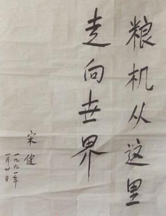 原國(guó)務(wù)委員、國(guó)家科委主任宋健參觀了當(dāng)時(shí)的安陸糧機(jī)廠后題詞:糧機(jī)從這里走向世界