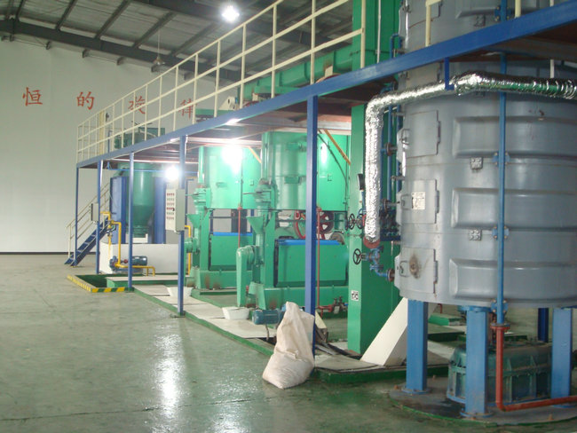主要設(shè)備:煉油鍋、熱交換器、高效脫色塔、過濾機(jī)、析氣器、加熱器、組合式脫臭塔、脂肪酸捕集器、冷卻器、四級(jí)蒸汽噴射泵、導(dǎo)熱油爐機(jī)組等。